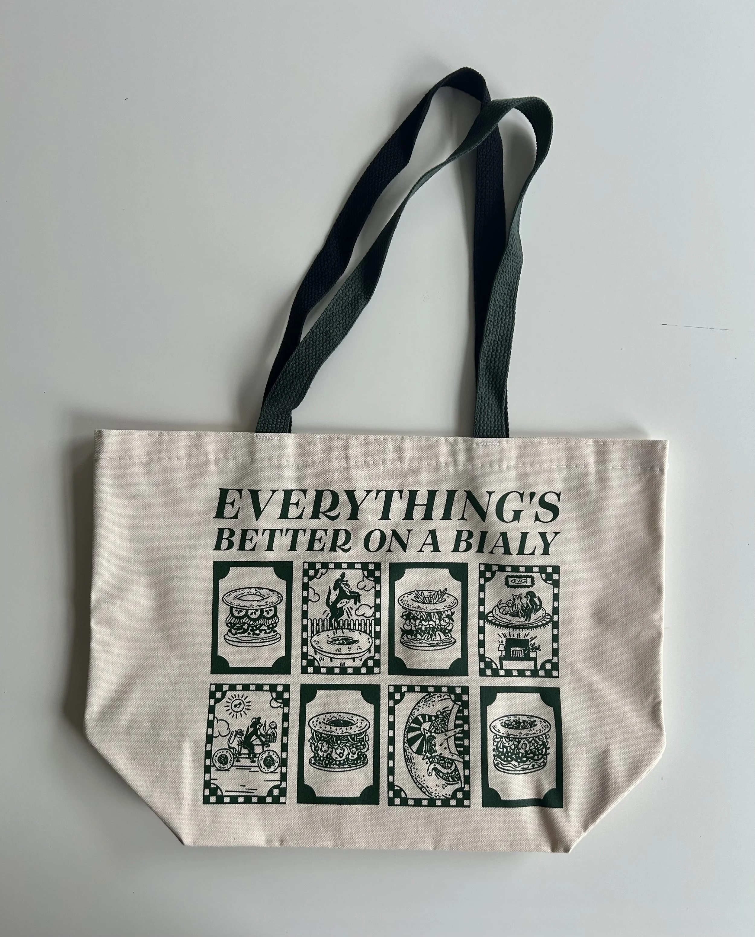 GIFT CARDS ⋆ GIFT CARDS ⋆ GIFT CARDS ⋆ buy here! Everything's Better on a Bialy Market Tote $22.00 Good Bialy Sweatshirt - Gray $35.00 Good Bialy Tee - Gray $20.00 Good Bialy Tee - Ivory $20.00 Vision Tee - Yellow $20.00 Vision Tee - Yam $20.00 Vision Tee - Sage $20.00 Botanical Tee - Gray $20.00 Bialy Curious Hat $35.00 Bialy Onesie $20.00